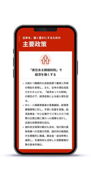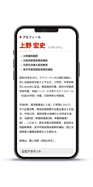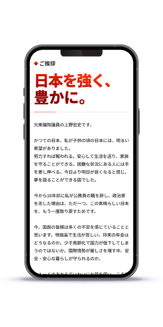 若い世代のスマホ利用はもちろん、シニア層の支持者の方々にも配慮し文字サイズや行間を設定。