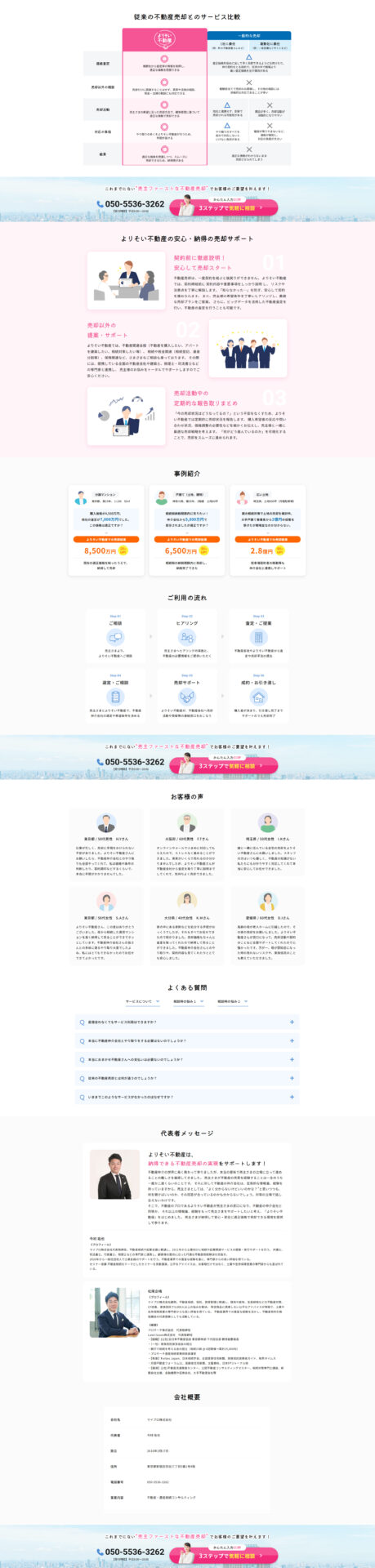 また、不動産売却における代表的な不安を一つずつ言語化し、それに対応する解決策を段階的に配置することで、訪問者が自然と不安を解消しながら読み進められる構成に。