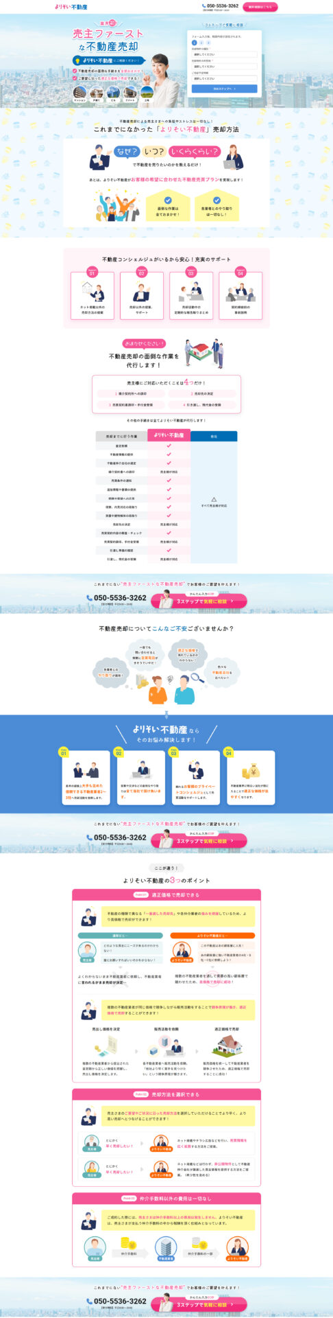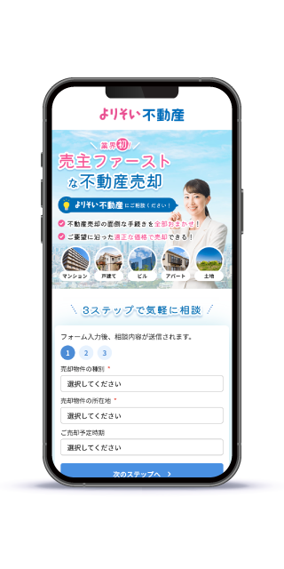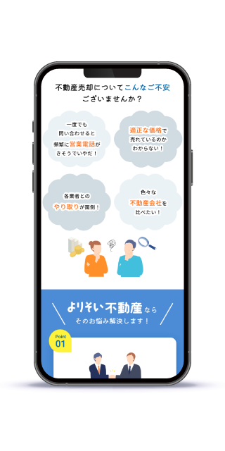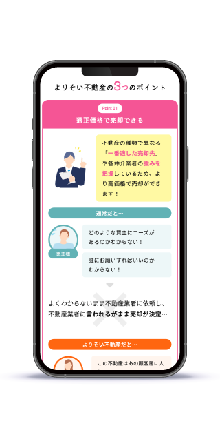 よりそい不動産は、不動産売却における売主様の不安や手間を軽減し、「売主ファースト」を徹底したサービスです。